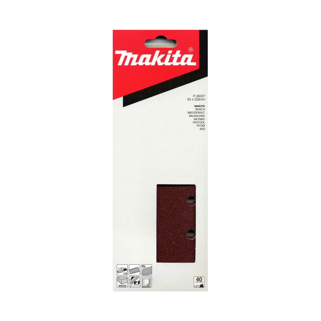 Hartie abraziva MAKITA, BO3710 / BO3711, set 10 bucati, gr.150, 8 gauri, 93×228 mm, P-36027